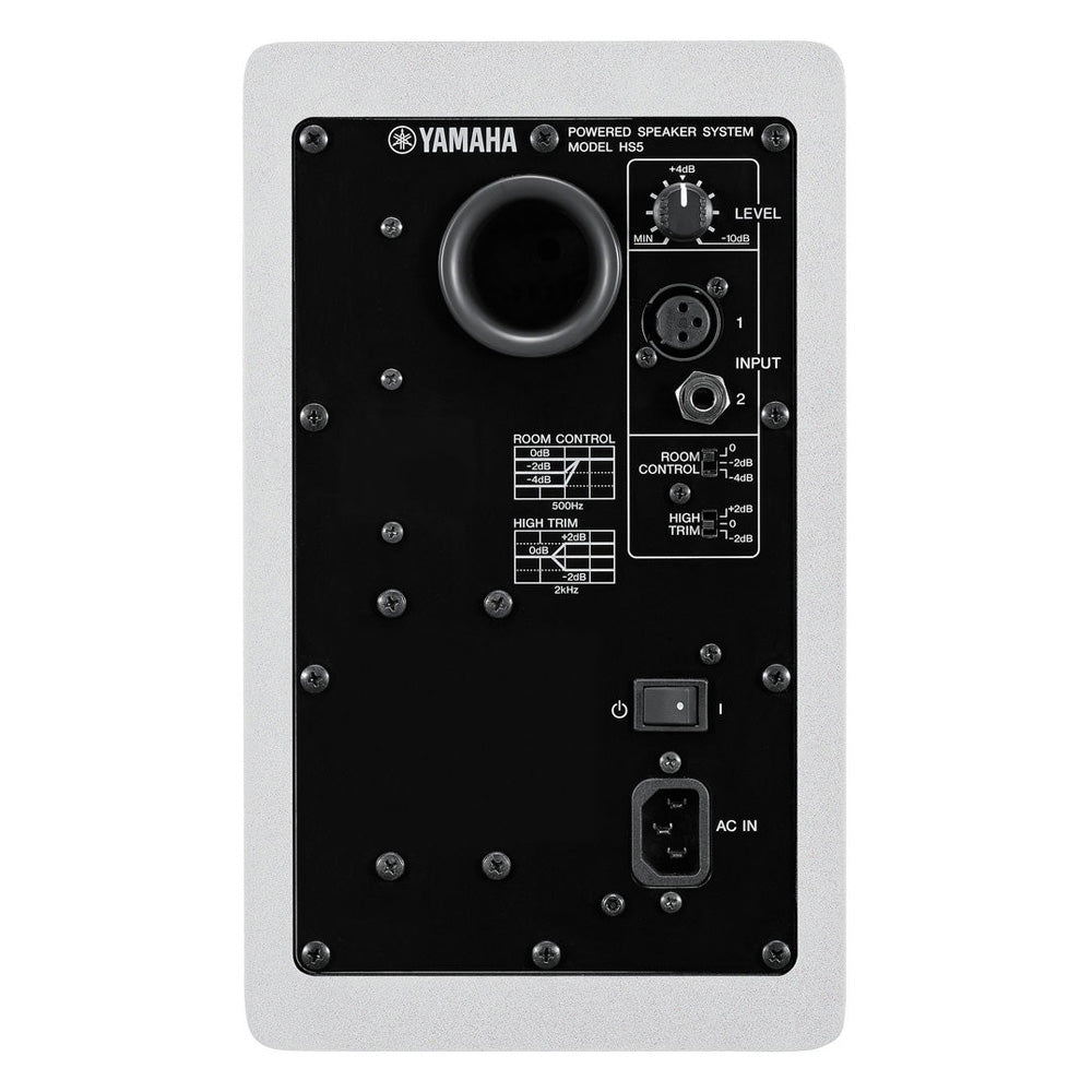 The white HS5 Powered Studio Monitor from Yamaha is a 2-way reference speaker that is designed for mixing and monitoring in your home or studio. Equipped with a 70W bi-amplification system that powers a 5" woofer and a 1" tweeter, the HS5 is designed to offer maximum headroom, minimal distortion, and an extended response up to 30kHz. The HS5 has both an XLR and 1/4" TRS input that accept either balanced or unbalanced signals for maximum flexibility in a variety of studio setups.