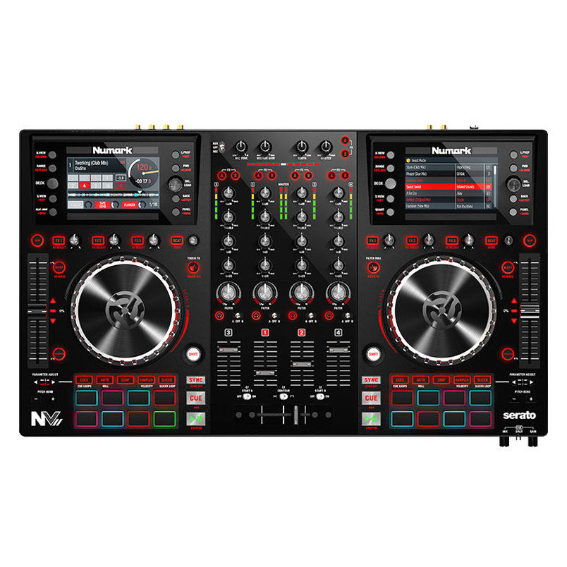 The NVII - Intelligent Dual-Display Controller for Serato DJ from Numark is an update to the original NV Serato controller, featuring an updated layout for fast, responsive operation, grid lines for seamless beat-matching, and support for 5-column sorting to search and view your music in a variety of ways. The NVII incorporates two 4.3" full-color displays to show Serato DJ's library, spinning virtual decks, effects (FX), cue points, waveforms, and more to provide 1:1 control up to four Serato decks with mouse-free library navigation controls. This design allows for the DJ's laptop to remain closed and out of view of the audience while performing a set.